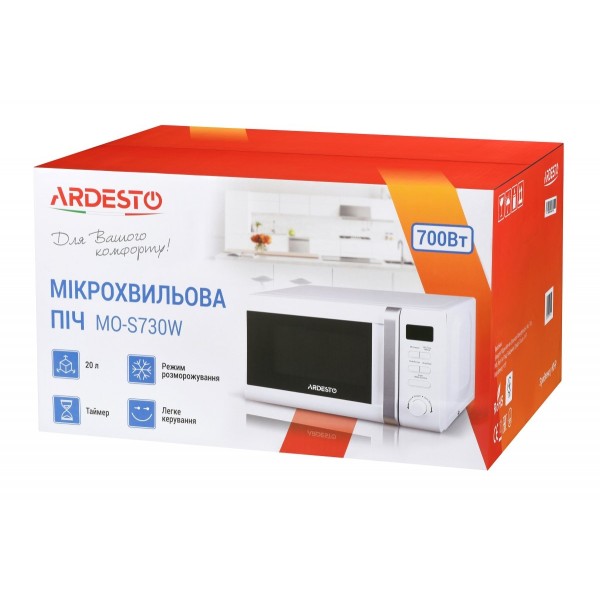 Стильная и незаменимая микроволновая печь Ardesto MO-S730W станет функциональным украшением вашей кухни.