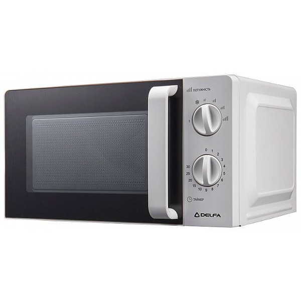 Стильная и удобная микроволновая печь Delfa Y30MW мощностью 700 Вт предназначена для разогрева и размораживания пищевых продуктов.