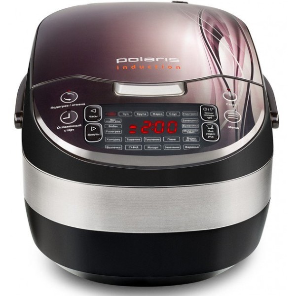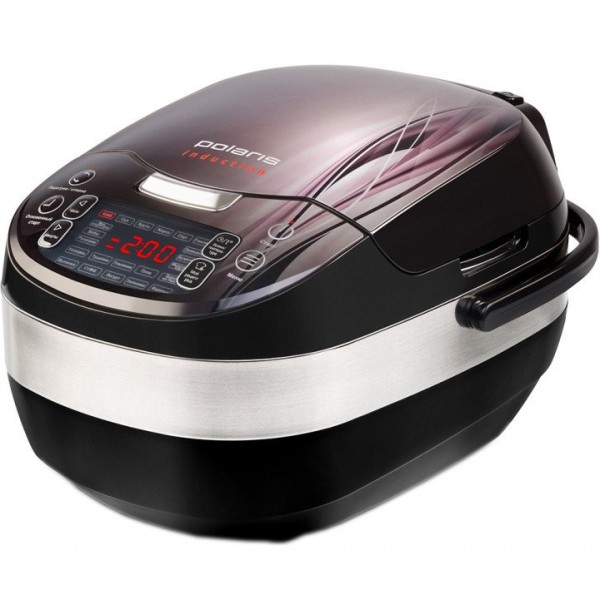 Мультиварка Polaris PMC 0489IH випускається у стильному сучасному дизайні, що поєднує бордовий, чорний та колір нержавіючої сталі.