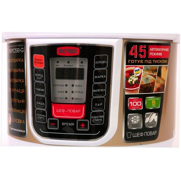 Вместе с Rotex REPC58-G вы сможете: готовить каши, крупы, гарниры, супы, варенье, йогурты, рыбу, птицу, мясо, выпекать хлебобулочные изделия и многое другое.