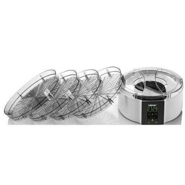 Сушилка для фруктов и овощей Zelmer ZFD 1350 W (FD 1002) оснащена электронным дисплеем и таймером с автоматическим отключением в диапазоне от 30 мин до 24 часов.