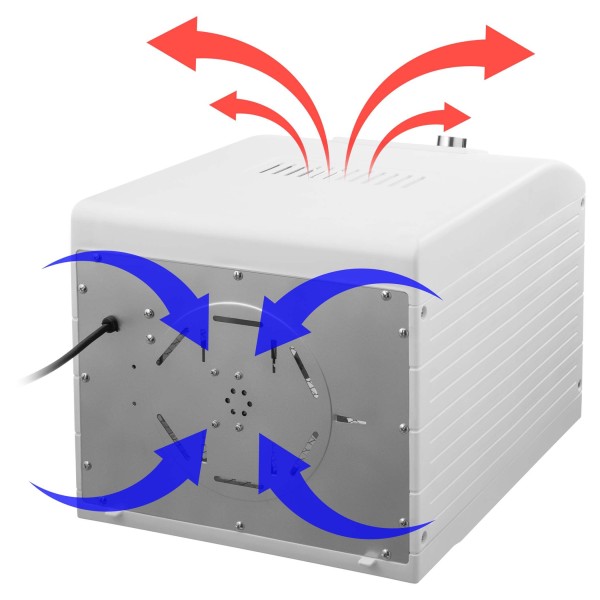 Horizontal Air Flow гарантує рівномірний розподіл тепла Усуває необхідність змінювати піддони місцями під час сушіння У цій моделі вбудований вентилятор сприяє рівномірному висушуванню на всіх ярусах.