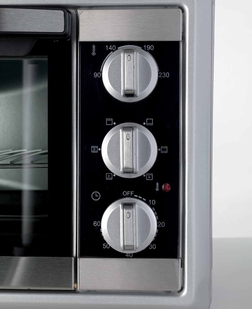 Купити Ariete 985 - придбати красиву та практичну техніку. Вона має дверцята з подвійним склом, які дозволяють спостерігати за приготуванням страв. Ця модель має корисні функції, які роблять використання зручним - автовимкнення, сповіщення про готовність їжі за допомогою сигналу. Корпус електропечі металевий, вона якісна та практична. У комплекті із цією моделлю ви отримаєте решітку, деко, ручку для вилучення дека. Електропіч оснащена піддоном для крихт, який потрібно час від часу спорожняти.