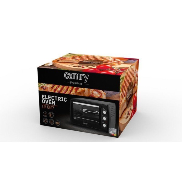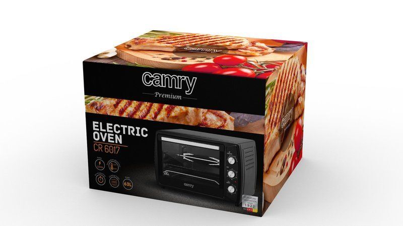 Духовка Camry CR 6017 має об'єм 63 л, що дозволяє готувати великі порції їжі або приготувати два різні продукти одночасно.