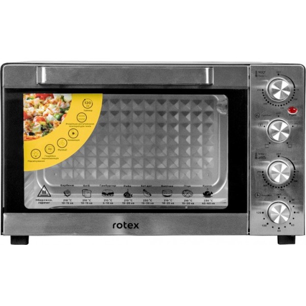Електродуховка Rotex ROT452-CB виготовлена в чорному хромі, що відмінно поєднується практично з будь-якою кухнею.