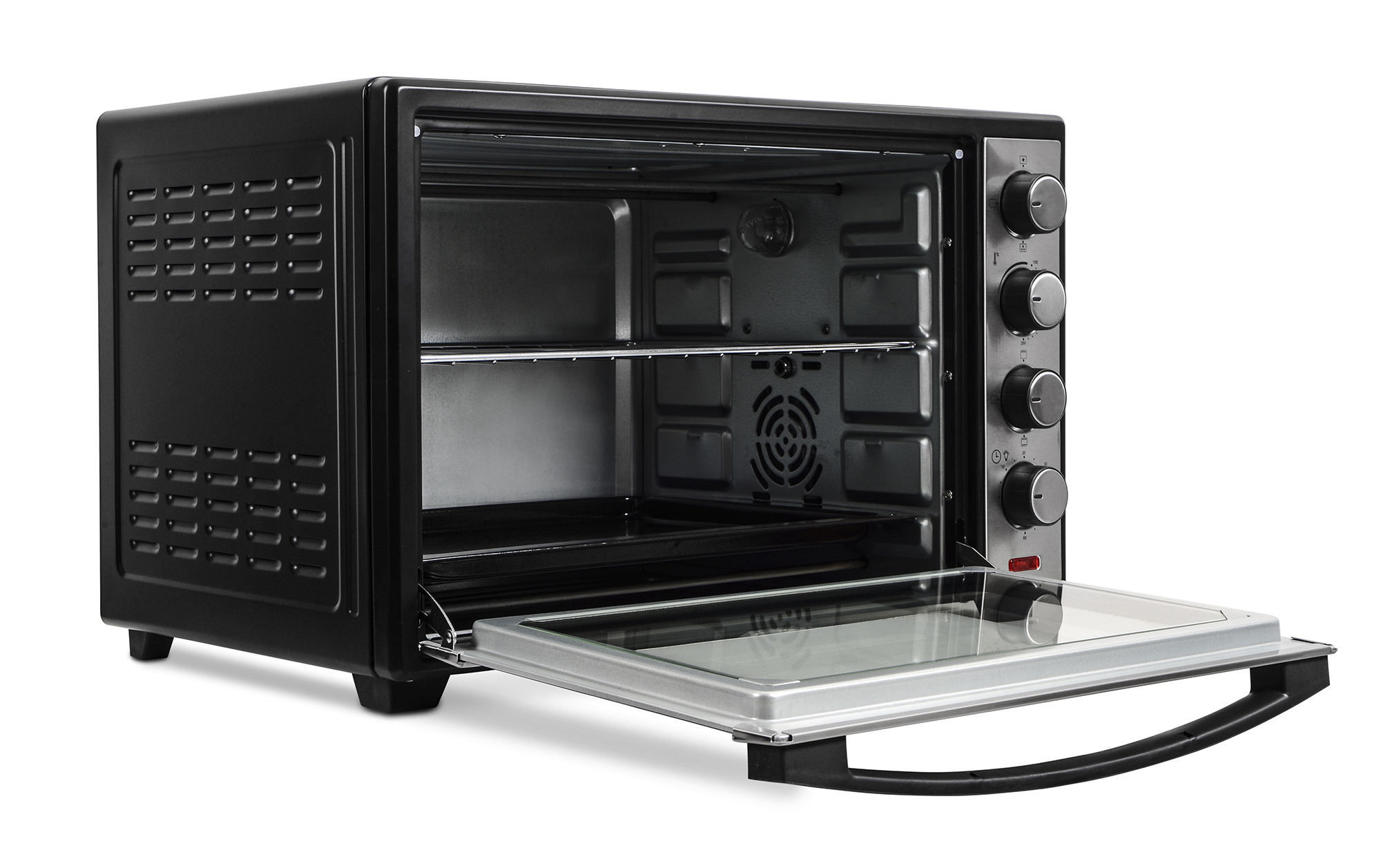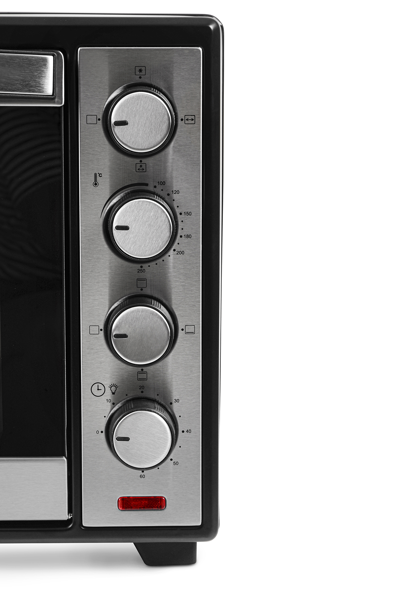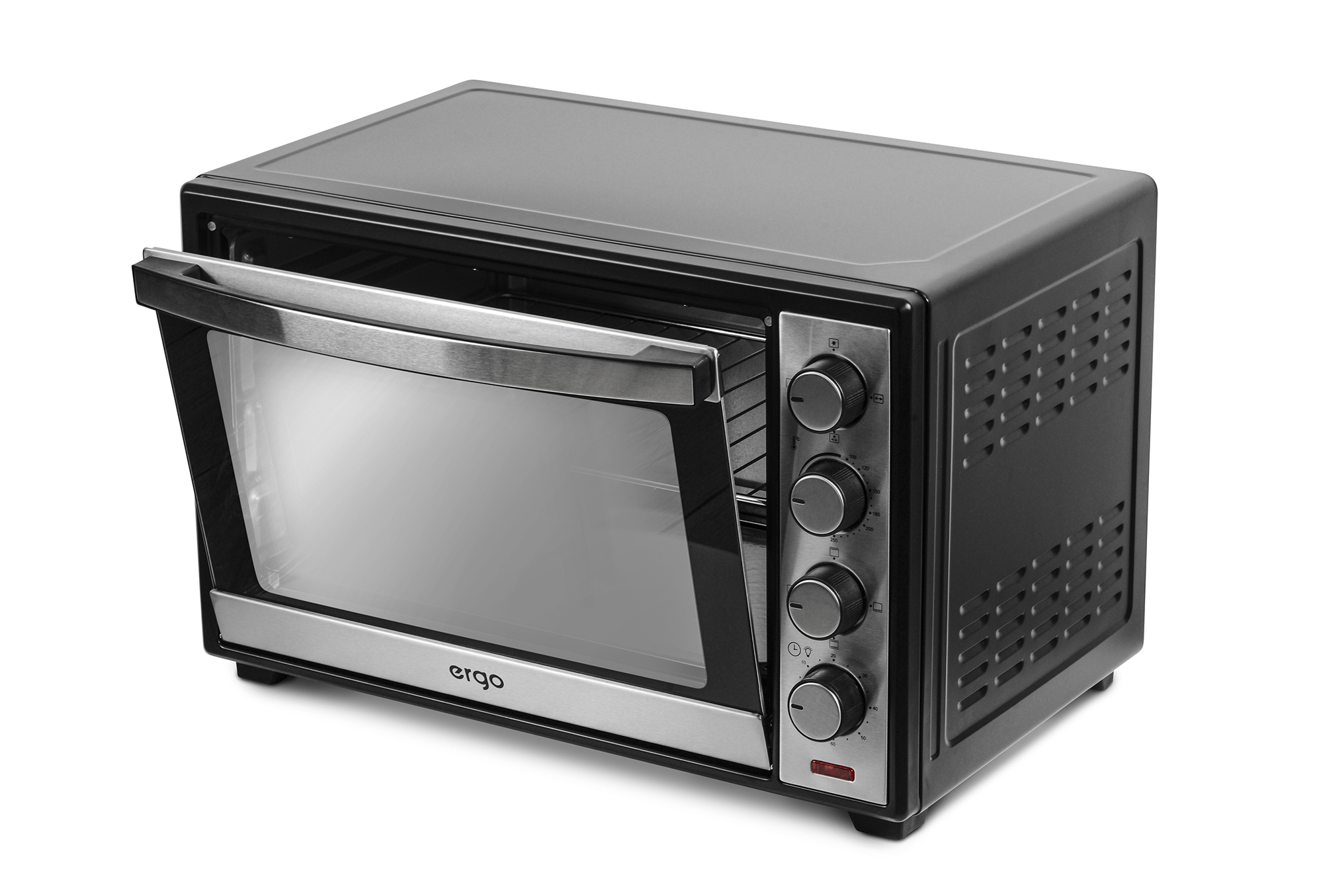 ERGO TO 930 – компактна, функціональна та стильна модель, яка завдяки вдалому поєднанню чорного кольорову й матової сталі прикрасить будь-який кухонний інтер’єр. Внутрішній простір, що має об’єм 38 літрів, поділено на декілька рівнів для зручності в користуванні й можливості готувати більшу кількість продуктів одночасно. Чотири ТЕНи дають максимальну потужність 1600 Вт, нагріваючи піч до 250°С.