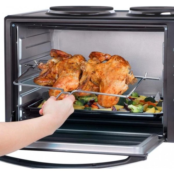 Ця помічниця об'ємом 45л зможе не лише посмажити стейк, приготувати м'ясо чи рибу, а й спекти найніжніші булочки та печиво.