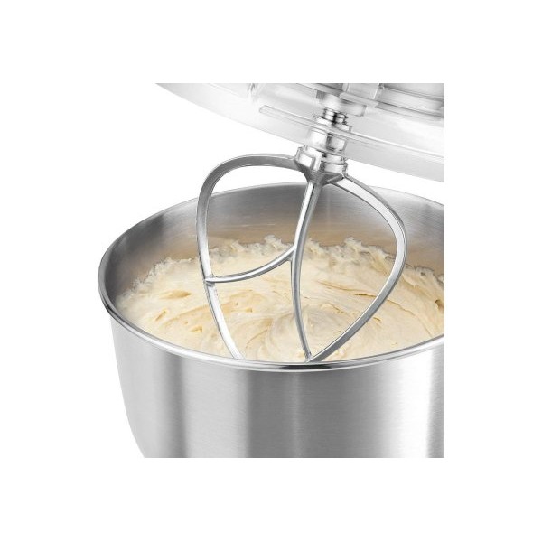 Прецизійне лиття під тиском, оригінальне шліфування, точне полірування та стабільний та довговічний лак для фарби. Поверхня гладка та легко миється. Чаша з металу, об'ємом 5 літра забезпечує достатню ємність для змішування тіста до 2,5-3 кг, також придатна для миття в посудомийній машині для швидкого і легкого очищення. Планетарне перемішування, замісу та збивання дозволить ретельно перемішати інгредієнти.