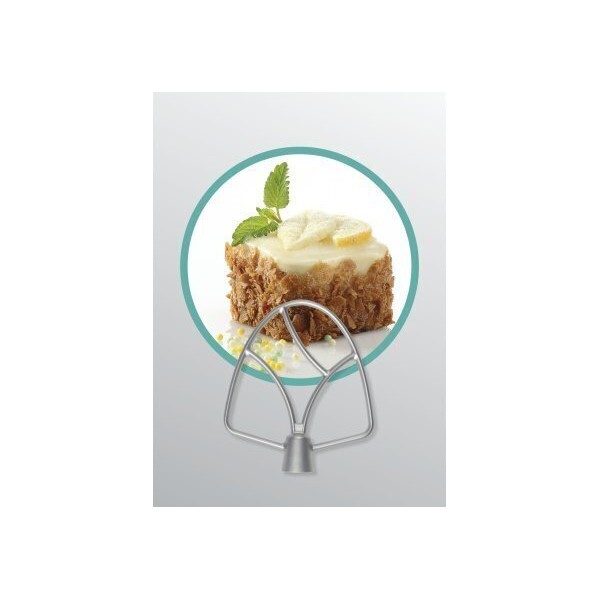 Прилад комплектується гаком для густого тіста, віночком для збивання та плоскою насадкою для ретельного перемішування.