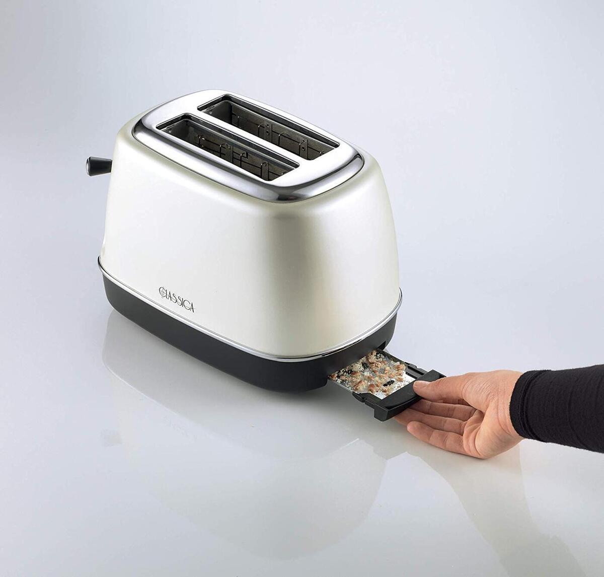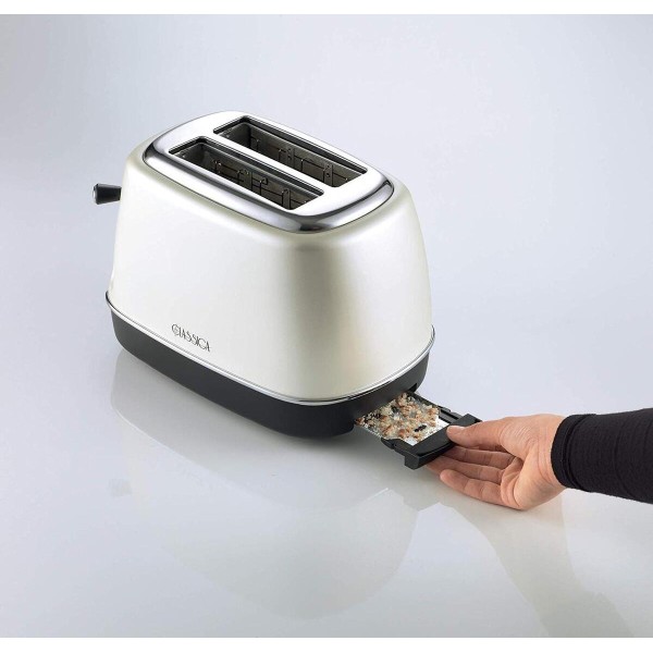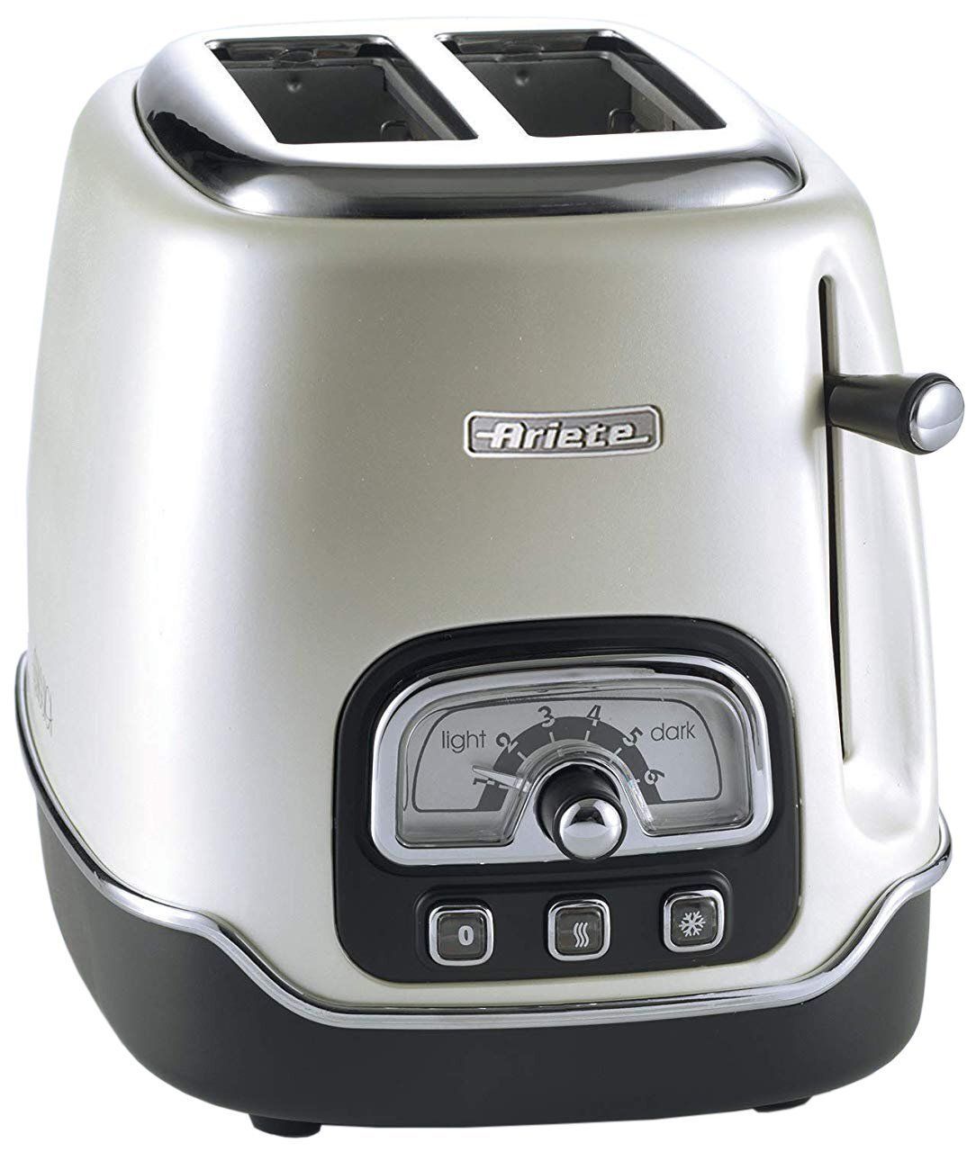 Електричний тостер Ariete 158 має відділення для 2 скибочок хліба, щипці з нержавіючої сталі для тостів, а також сендвічів з начинкою. Компактний та елегантний дизайн, обладнаний автоматичним викидом тостів, знімним піддоном для крихт, 6 регульованими рівнями підрум*янення, негерметичними стінками та функцією підсмажування, нагріванням та розморожуванням. Елегантність, яку не можна пропустити на вашій кухні!