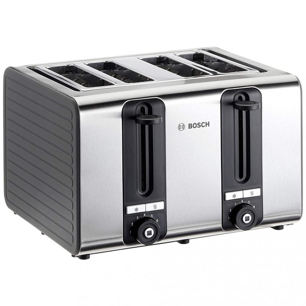 Тостер Bosch TAT7S45 потужністю 1500-1800 дозволить Вам приготувати смачні тости з легкою скоринкою за лічені хвилини, для цього в ньому пропонується на вибір 7 температурних режимів.