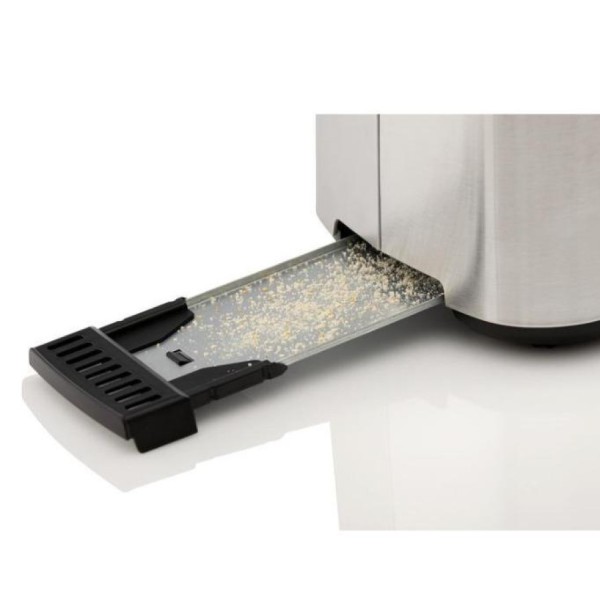 Знімний піддон для крихт полегшує чищення та підтримує порядок на кухні. Тостер також оснащений гратами для приготування бутербродів, що розширює його функціональні можливості. Механічна регулювання ступеня обсмажування дозволяє точно контролювати процес приготування. Гумові ніжки забезпечують стійкість тостера на будь-якій поверхні, а холодні стіни забезпечують безпеку під час експлуатації.