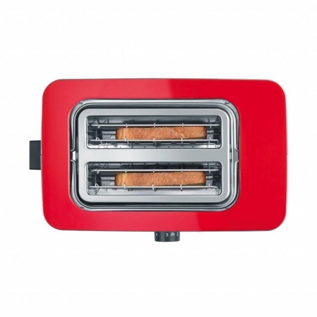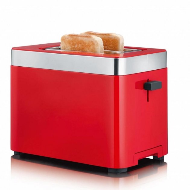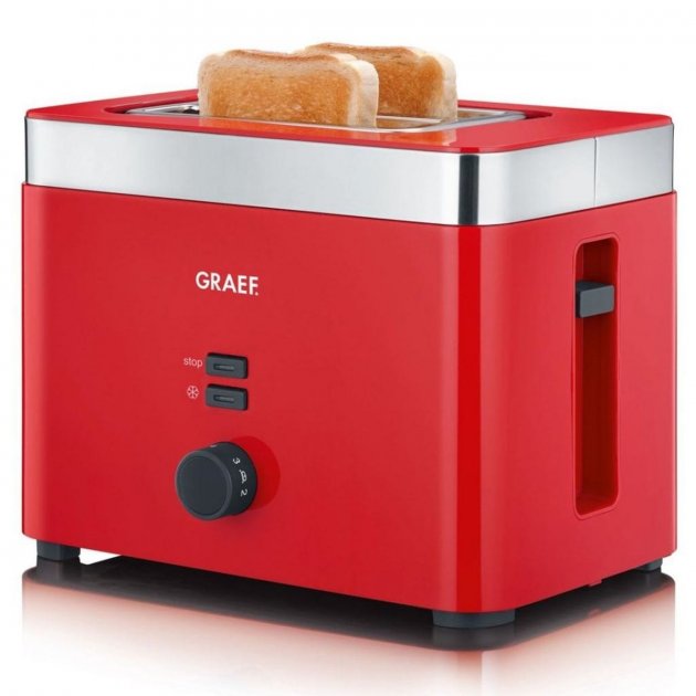 Корпус электроприбора теплоизолирован и имеет благородный красный цвет. Благодаря этому тостер модели TO 63 прекрасно будет смотреться на кухне, оформленной в любом интерьере, а те тосты, которые приготовит электроприбор, станут настоящим дополнением к любому напитку на завтрак, к примеру, к чаю или же кофе. Купить тостер Graef TO 63 стоит потому, что он имеет специальную подставку, благодаря которой вы сможете как разморозить, так и подогреть хлеб либо булочку. Вы легко и просто сможете удалить тосты с помощью встроенной функции Extra-лифт. Так же, на корпусе электроприбора имеется кнопка остановки тостера. Благодаря поддону для крошек они у вас не подгорят и не доставят неприятного запаха в доме или квартире.