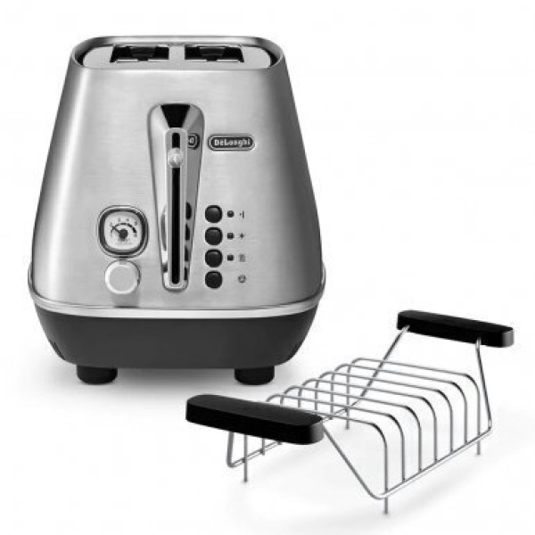 Тостер DeLonghi CTI 2103 M перетворює звичайні сніданки на стильну подію. Це не просто прилад для підсмажування хліба, а справжня дизайнерська річ із колекції Distinta. Він буде виконувати не тільки функціональну роль, а й декоративну, адже його дизайн по-справжньому вишуканий і здатний привнести нове дихання в інтер'єр. Гармонія білого пластику, хромованих деталей та неонового підсвічування дуже тішить око.