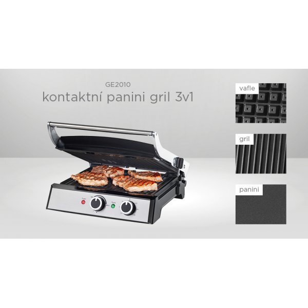 Одна з панелей призначена для приготування вафель, інша (гладка) - для приготування омлетів з беконом, гарячих сендвічів або грінок, а третя - хвиляста панель для обсмажування стейків будь-якої товщини з різних видів м'яса або риби, а також овочів-гриль з грибами.