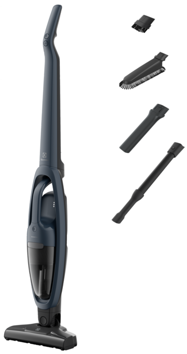 Пилосос Electrolux безпровідний, конт пил -0,3л, автон. робота до 45хв, вага-2.65кг, НЕРА, 2 в 1, турбо-щітка, 4 насадки, синій