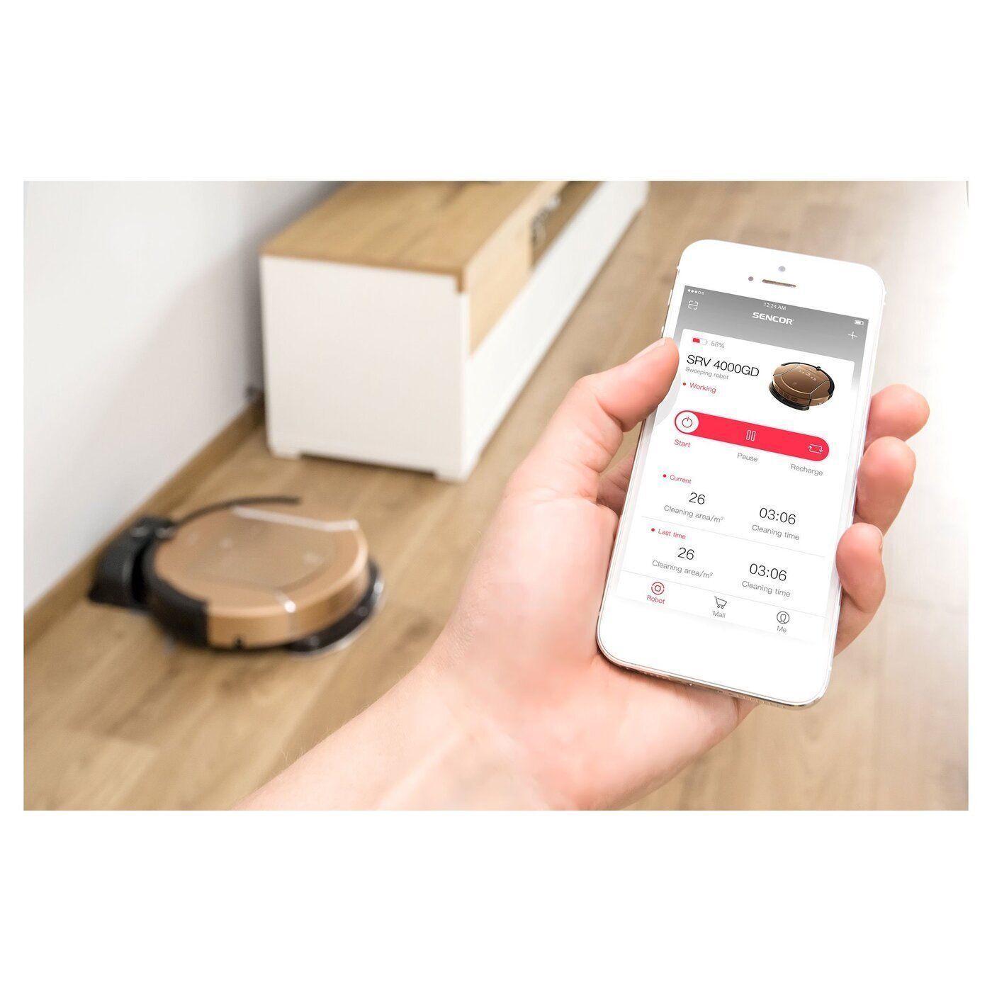 Робот-пилосос Sencor SRV4000GD. Ідеально підходить для прибирання килимів, плаваючих підлог, паркету, лінолеуму, плитки і т.п. Інфрачервоний фронтальний датчик, що запобігає зіткненню. Дуже тиха робота, сприятлива для домашніх тварин. Здатність піднятися на килим товщиною до 2 см.