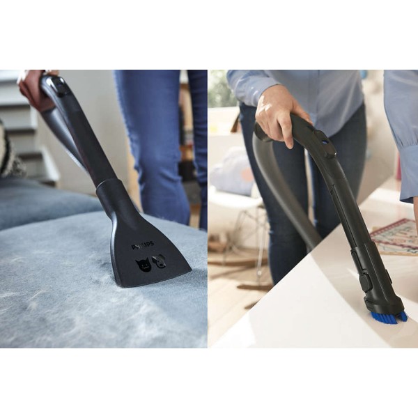 Вбудована щітка для пилу знаходиться на ручці, тому завжди готова до використання на меблях, пласких поверхнях і оббивці. Насадку для меблів створено для найкращого чищення м’яких меблів, наприклад, подушок, диванів та крісел, і навіть видалення шерсті тварин.