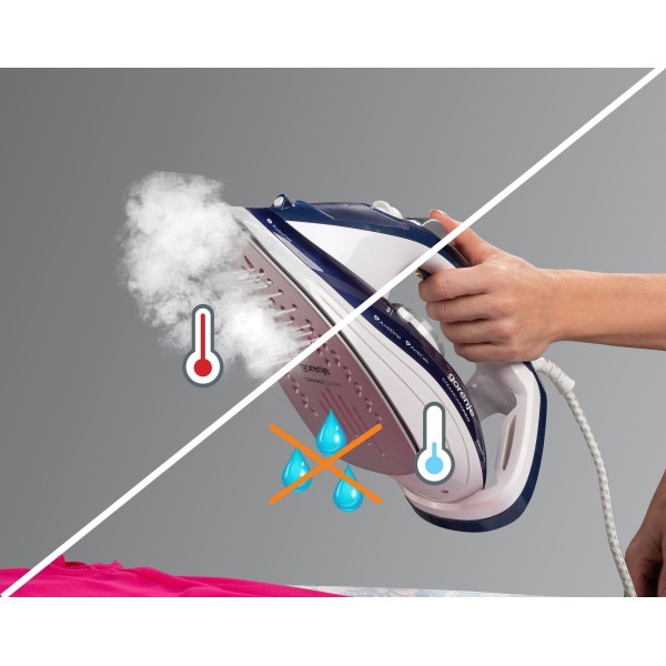 Ви завжди можете регулювати подачу пари, збільшуючи або зменшуючи її силу. Для усунення складок, що найбільше піддаються, застосовуйте потужний паровий удар з максимальною кількістю вивільнення гарячої пари. Тримаючи в горизонтальному положенні, ви зможете за допомогою пари усунути зморшки на одязі, що висить на плічках, а також на штори, портьєри.