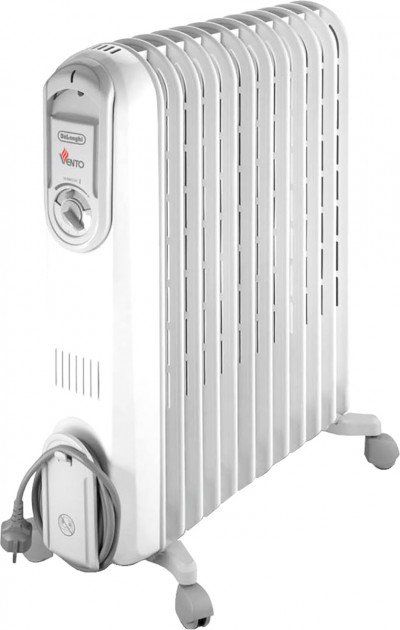 Масляный радиатор DeLonghi V 551225 легко перемещать благодаря роликам, а шнур можно спрятать в специальный для него отсек.