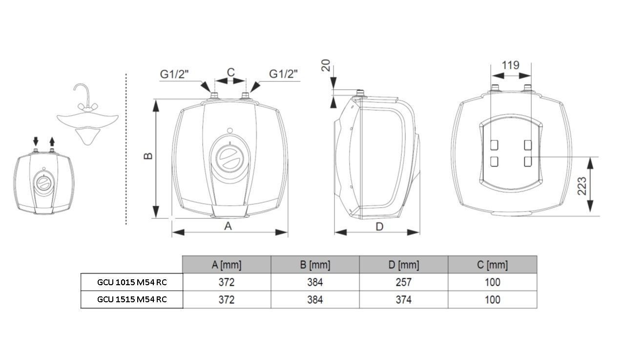 Малолітражні і компактні водонагрівачі серії SimpatEco М54 представлені об’ємами 10 і 15 літрів моделями для установки як під раковиною, так і над раковиною.