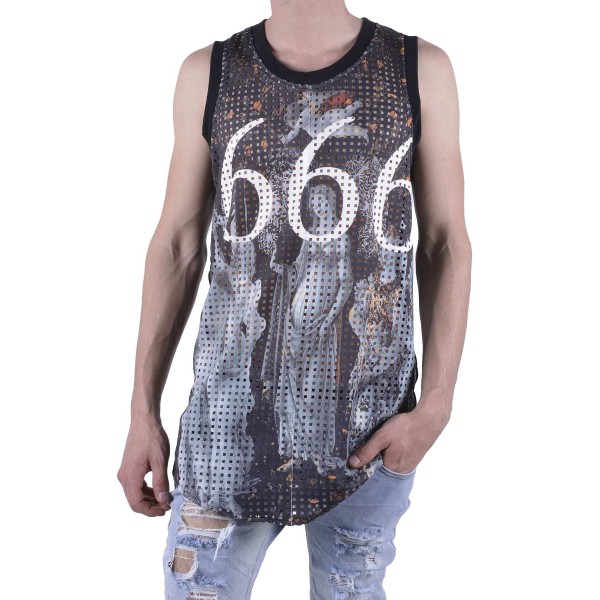 MADE IN ITALY: bimaterial, designer motif, round collar, sleeveless, no appliques .