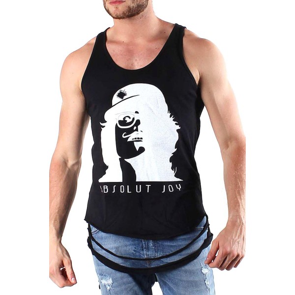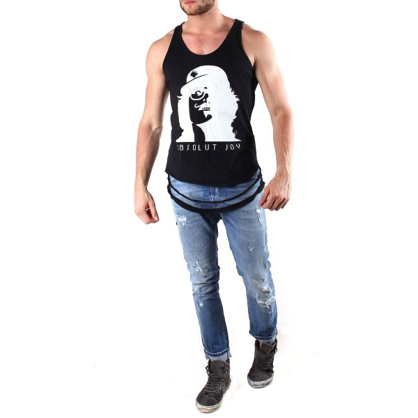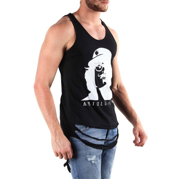 MADE IN ITALY: round collar, sleeveless, designer motif, ripped effect, wash at 30°.