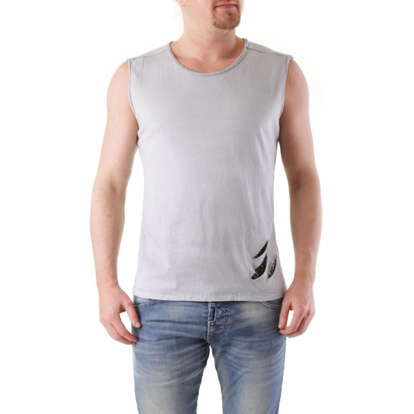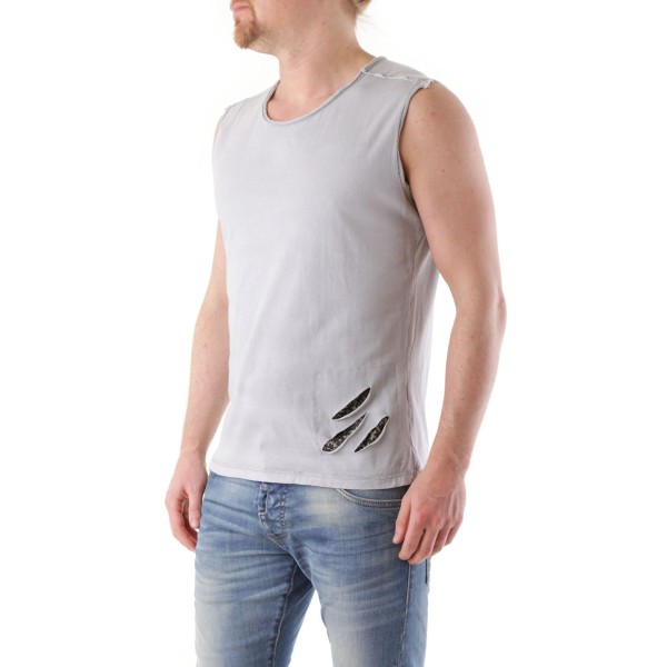 MADE IN ITALY: round collar, sleeveless, no appliques , designer motif, ripped effect.