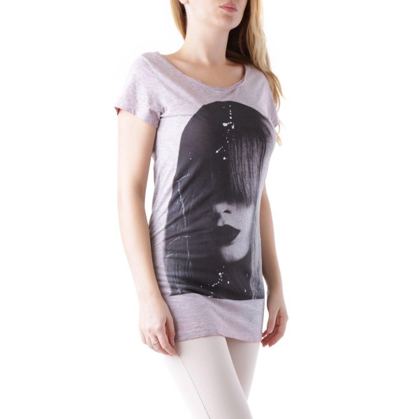 MADE IN ITALY: round collar, ripped effect, print, short sleeve, no closure, stained effect, wash at 30°.