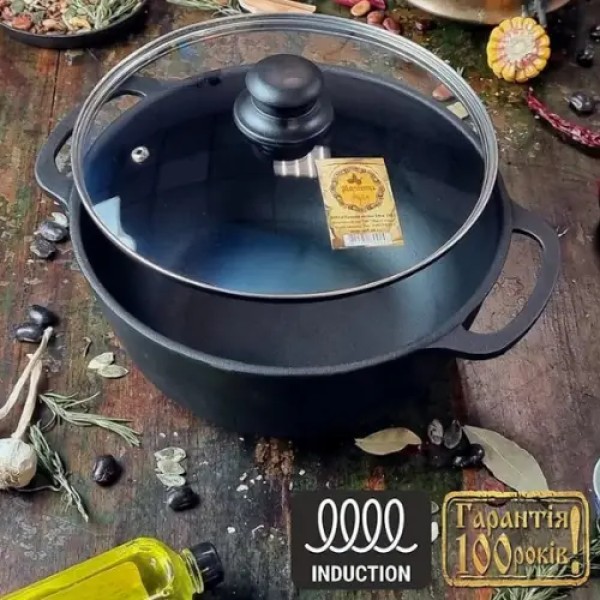 Каструля чавунна 4 л. Maysternya V4С3 з скляною кришкою