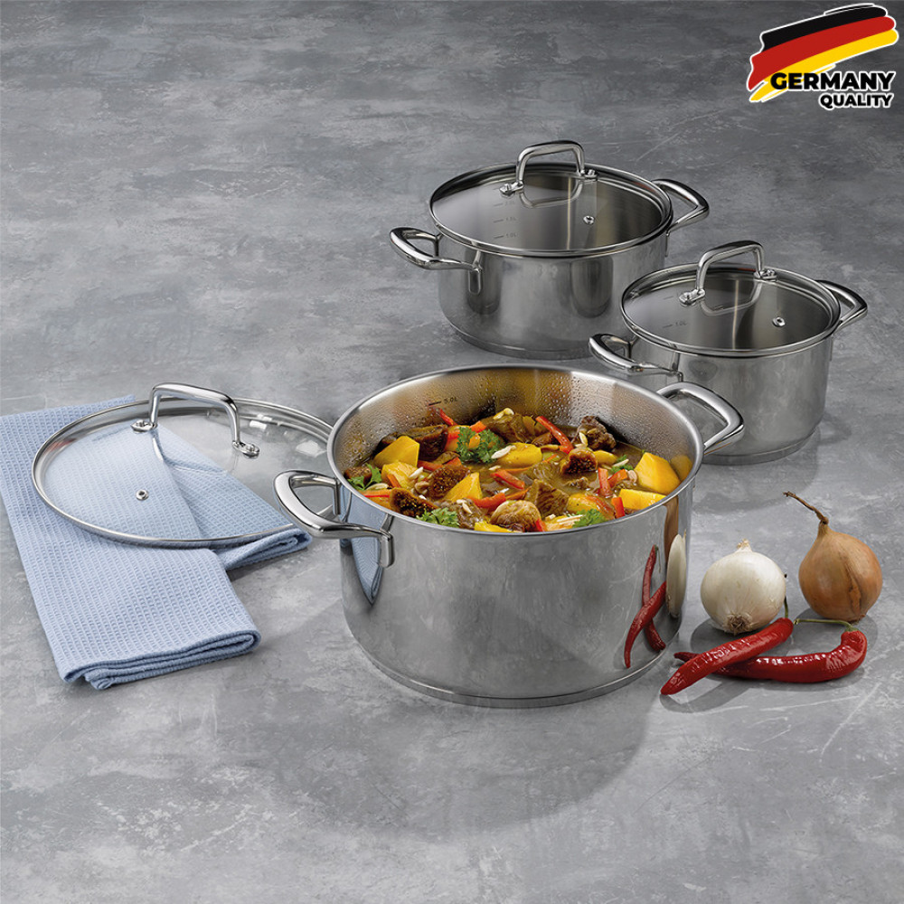 Набір каструль з кришкою KELA Flavoria 16 см, 1,2 л (10171), 20 см, 2,4 л (10172), 24 см, 4,6 л (10173)