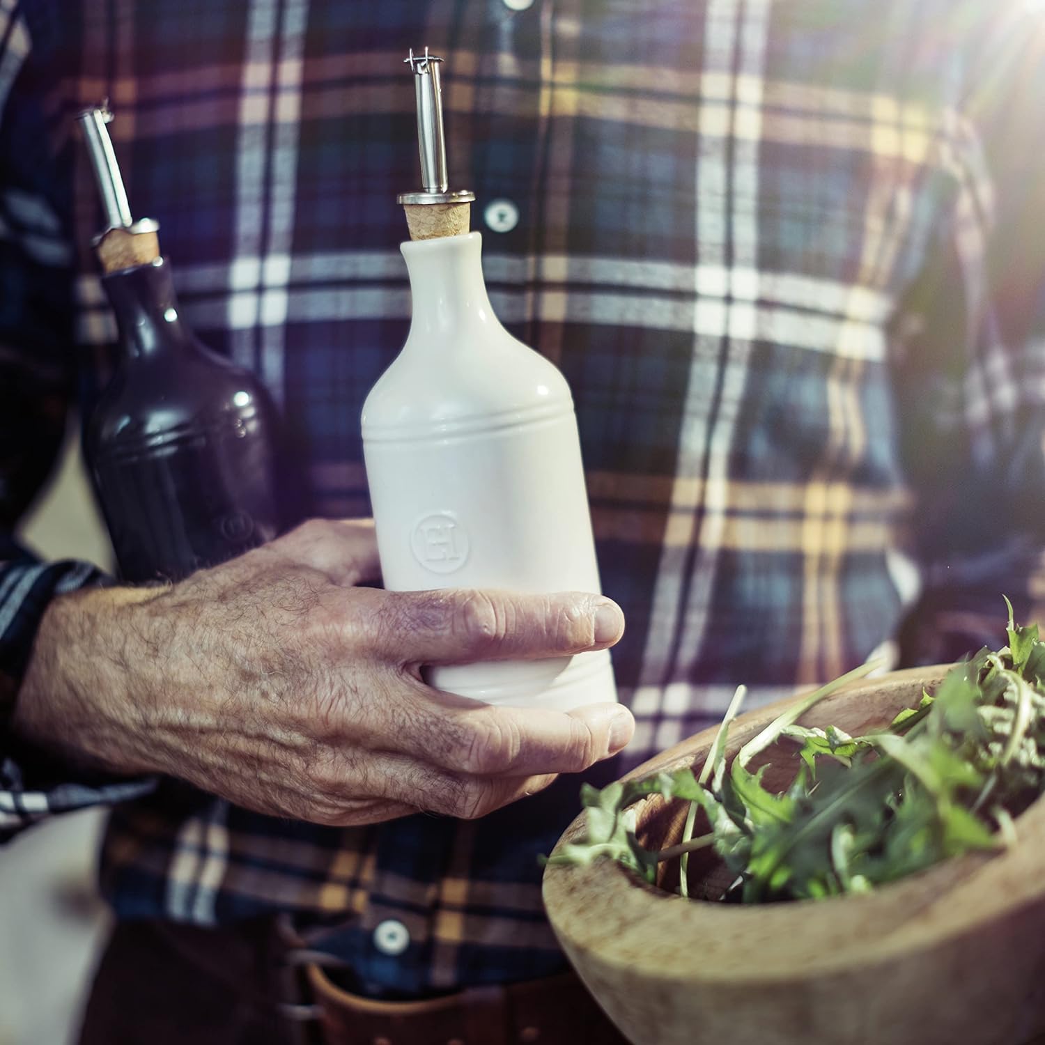 Наші оригінальні кольори підкреслюють автентичний дизайн цієї посудини для олії та додають яскравих фарб вашій стільниці або столу.