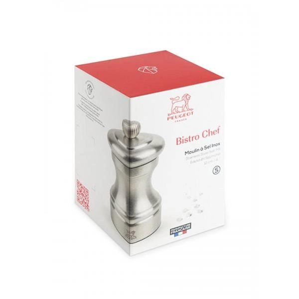 Млин для солі Peugeot Bistro Chef виготовлений з нержавіючої сталі. Продуманий дизайн виробу вдало поєднує практичність, надійність та естетичність. Завдяки гарній ергономіці млин зручно утримувати в руках, а механічна система управління не потребує особливих навичок та умінь. Для зміни інтенсивності подрібнення на корпусі передбачено невелику гайку, повернувши яку за годинниковою стрілкою, ви встановите режим дрібного помелу, а проти годинникової - грубого.