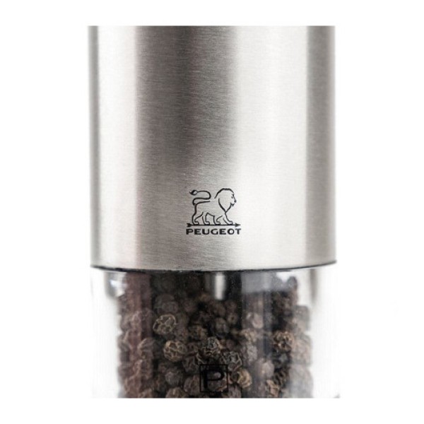 Peugeot запускає перше покоління електричних млинів із сенсорним керуванням. На батарейках. Завдяки впровадженню сенсорної технології Elise Sense відрізняються ергономічним дизайном. Достатньо легкого дотику, щоб отримати потрібну кількість солі або перцю, немає необхідності натискати на кнопку. Синє підсвічування вказує, що млин знаходиться в робочому стані, а LED освітлення в основі млина дозволяє вам контролювати кількість і ступінь помелу спецій. Запатентована система регулювання u'Select пропонує вибрати будь-який ступінь помелу.