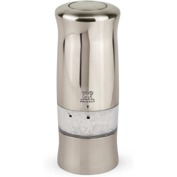 КОМПАКТНІ МЛИНИ. Одним дотиком електричні млини Zeli спалахують і видають свіжомелену сіль. Надайте сучасний вигляд вашій кухні. Просто натисніть кнопку для швидкого та точного керування однією рукою. Розроблено у Франції компанією Peugeot.