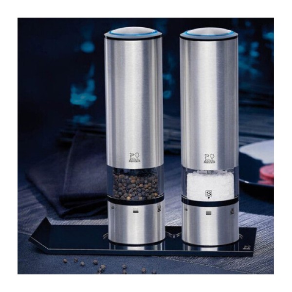Достатньо легкого дотику, щоб отримати потрібну кількість солі або перцю, немає необхідності натискати на кнопку. Синє підсвічування вказує, що млин знаходиться в робочому стані, а LED освітлення в основі млина дозволяє вам контролювати кількість і ступінь помелу спецій.