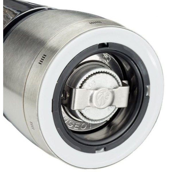 Особливий шарм колекції Daman u'Select надає плавний силует корпусу млинів і поєднання акрилу і нержавіючої сталі, що мерехтить на світлі. Запатентована технологія u'Select дозволяє підібрати ступінь помелу спецій так, щоб досягти ідеальної гармонії з кожною стравою. Млин для солі з системою u'Select Peugeot Daman - це оригінальний і стильний млин для солі з ручним управлінням, оснащений високоточною системою регулювання помелу в основі. Кільце регулювання помелу має градуювання. Ваші страви придбають пікантні нотки.