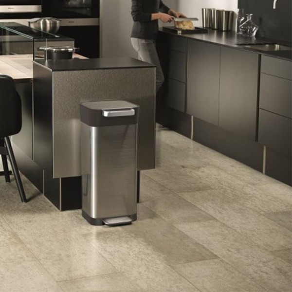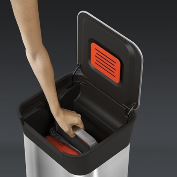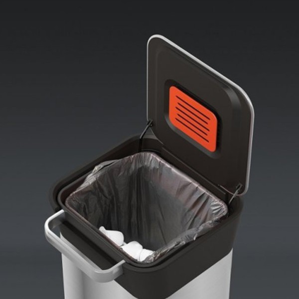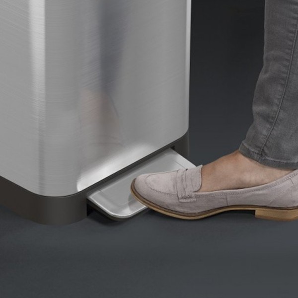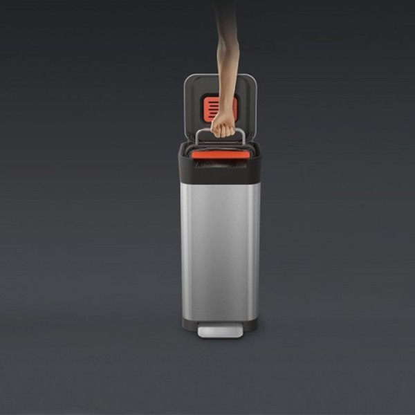 Виріб має унікальний спеціальний механізм для утрамбування сміття, маленька основа вміщує в 3 рази більше свого обсягу. Піднімаючи та натискаючи на міцну ручку з нержавіючої сталі, мішок усередині контейнера автоматично закривається, не торкаючись сміття. Підвищений тиск на ручку і нижній каркас стискає сміття і знову створює простір у відрі для сміття.