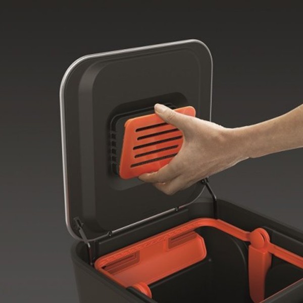 Мішки для сміття не розтягуються під час процесу, стандартні мішки для сміття можна також використовувати без розривів. Надміцні пакети, що спочатку включені в комплект поставки, гарантують безпроблемну роботу. Змінний вугільний фільтр у кришці пов'язує одержувану вологу та запобігає появі неприємних запахів на кухні.
