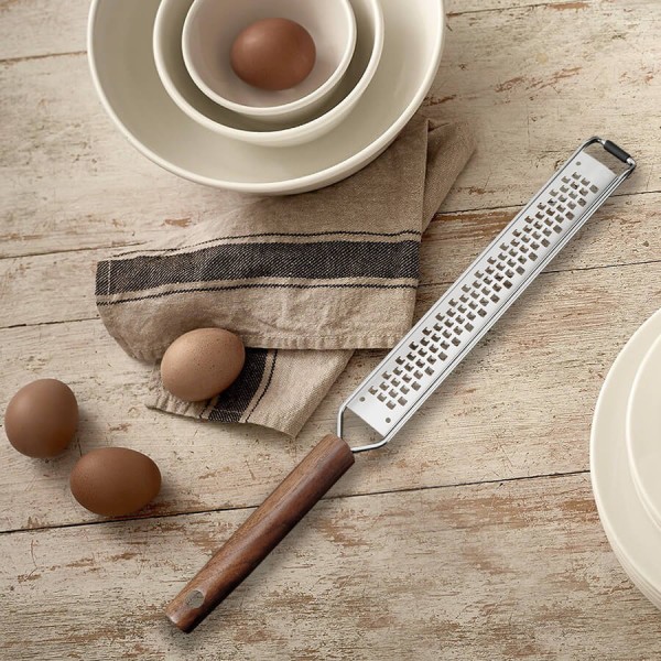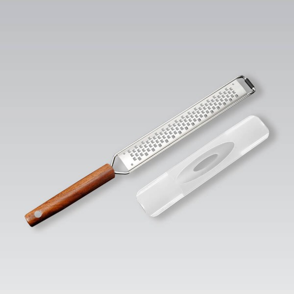 Плоска одностороння тертка підходить для натирання пармезану, цедри, шоколаду, часнику.