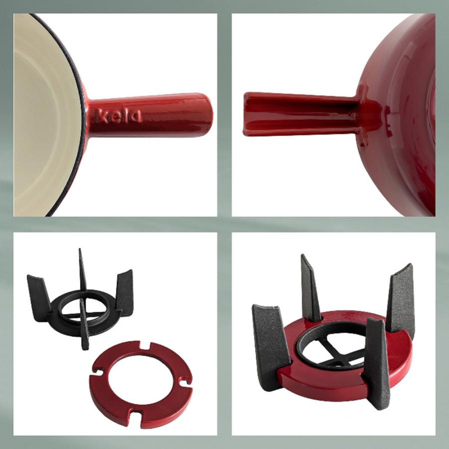 Набір для фондю KELA Calido — це не просто кухонний посуд, а елемент затишку, який об'єднує батьківщину та друзів за одним столом. Його продуманий дизайн і насичений червоний колір додають теплу та стилю будь-якої атмосфери — від тихого сімейного вечора до святкової вечірки з гостями. Він створений для того, щоб кожний момент спільного приготування їжі перетворився на приємну та пам'ятну подію.