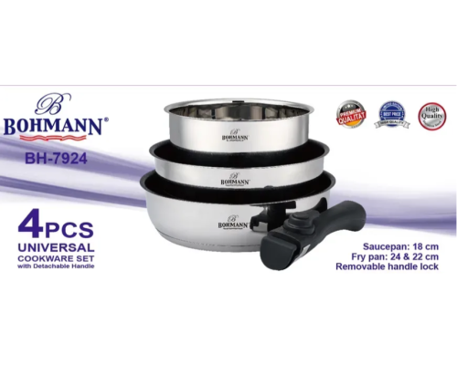 Набір сковорідок з сотейником Bohmann BH 7924 (знімні ручки)