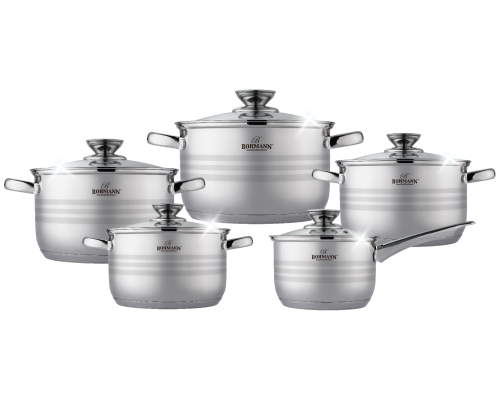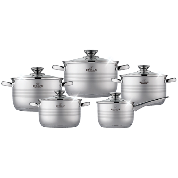 Комплект посуду з нержавіючої сталі Bohmann BH 1510 каструлі та ковшик 10 предметів