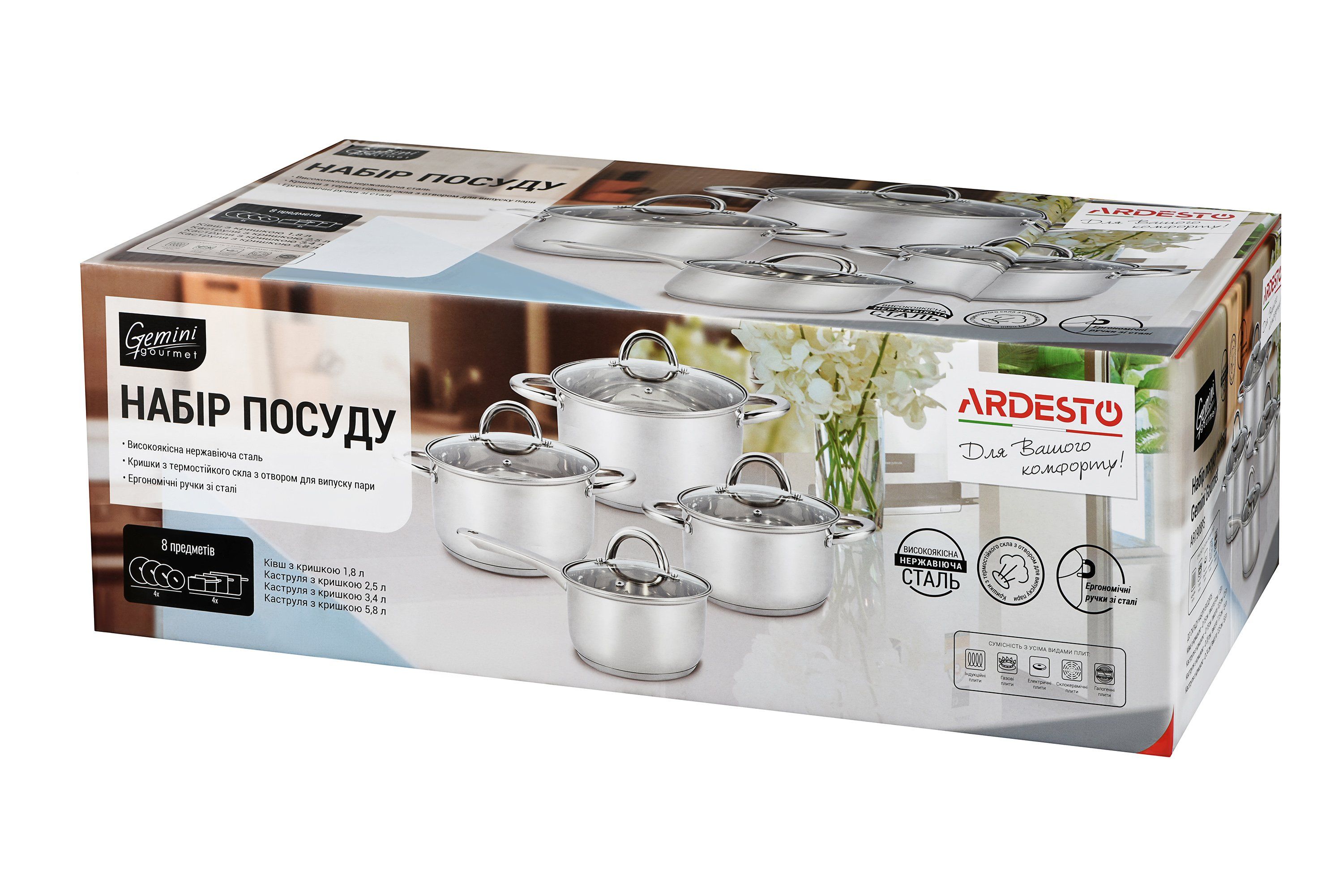 Набір посуду Ardesto Gemini Gourmet Andria, 8 пред., нержавіюча сталь