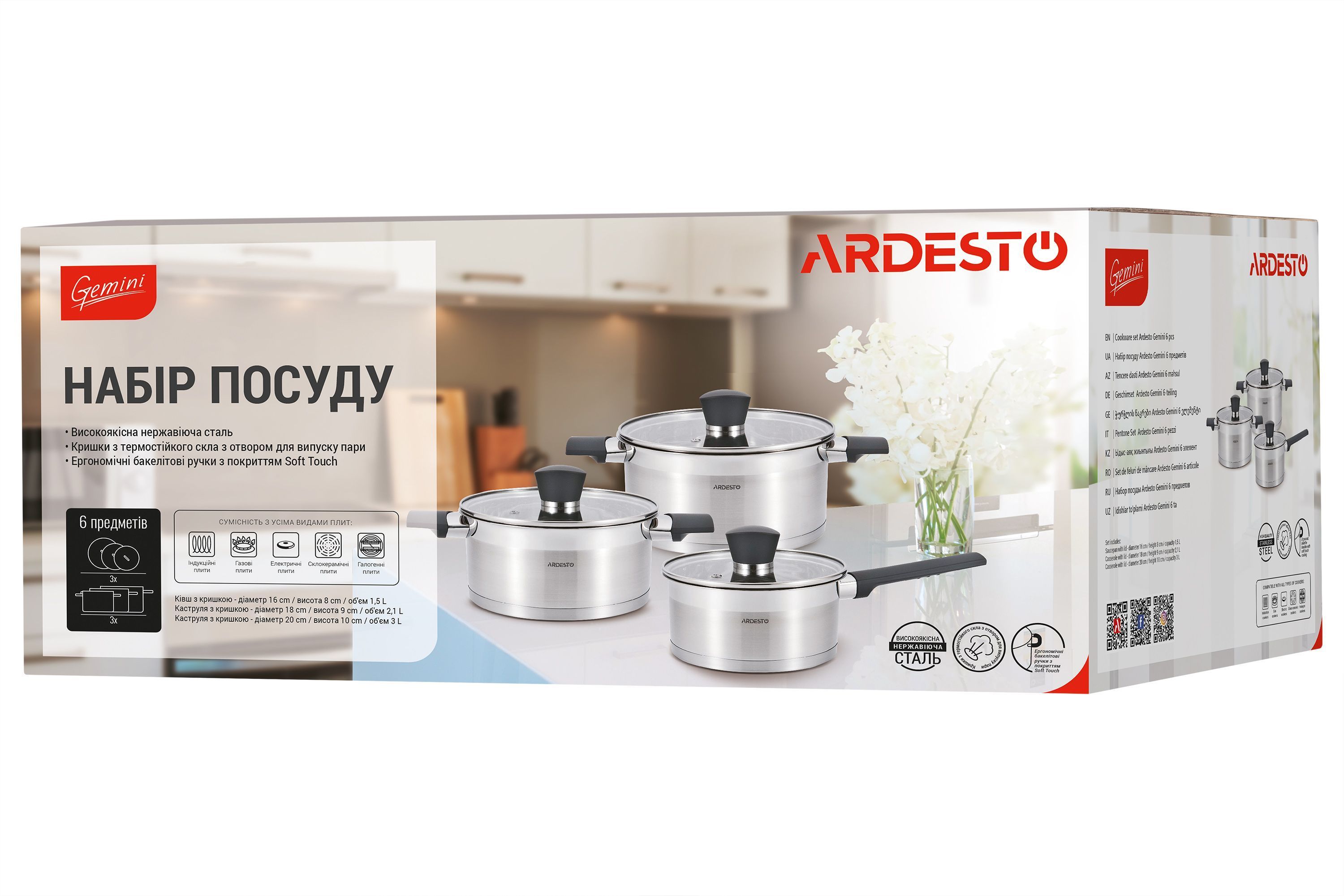 Набір посуду Ardesto Gemini Trento 6 пред., нержавіюча сталь
