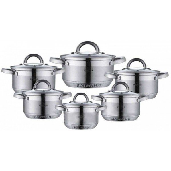 Набір кухонного посуду Bohmann BH-0717 включає 12 предметів (6 каструль різного об'єму з кришками). Весь посуд виконаний з високоякісної нержавіючої сталі. Такий матеріал не схильний до корозії і витримує високі температури. Дно каструль - п'ятишарове, воно рівномірно розігрівається, що сприяє рівномірному нагріванню їжі. Завдяки антипригарному покриттю їжа не прилипатиме до посуду в процесі приготування.