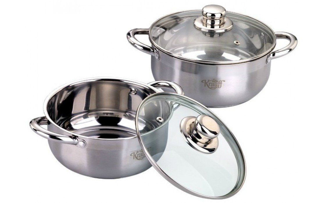 Набір посуду Krauff 26-212-007 виготовлений із нержавіючої сталі, тому він не вступає в реакцію з кислотами та лугами навіть за дуже високих температур.