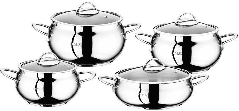 Комплект OMS Collection складається з 8 предметів, виготовлених із якісної нержавіючої сталі. Традиційний матеріал - нержавіюча сталь 18/10 у поєднанні з високоякісним алюмінієм, відповідає останнім вимогам в галузі кулінарної майстерності. Посуд зручний у використанні, легкий і простий у догляді.
