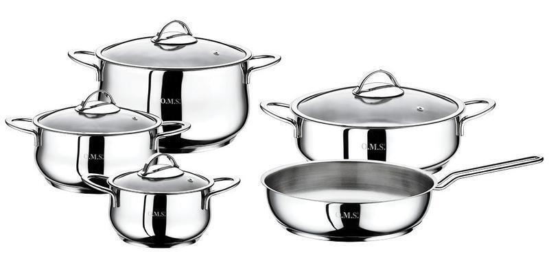 Комплект OMS Collection складається з 9 предметів, виготовлених з якісної нержавіючої сталі. Традиційний матеріал – нержавіюча сталь 18/10 у поєднанні з високоякісним алюмінієм, відповідає найостаннішим вимогам у галузі кулінарної майстерності. Посуд зручний у використанні, легкий і простий у догляді.