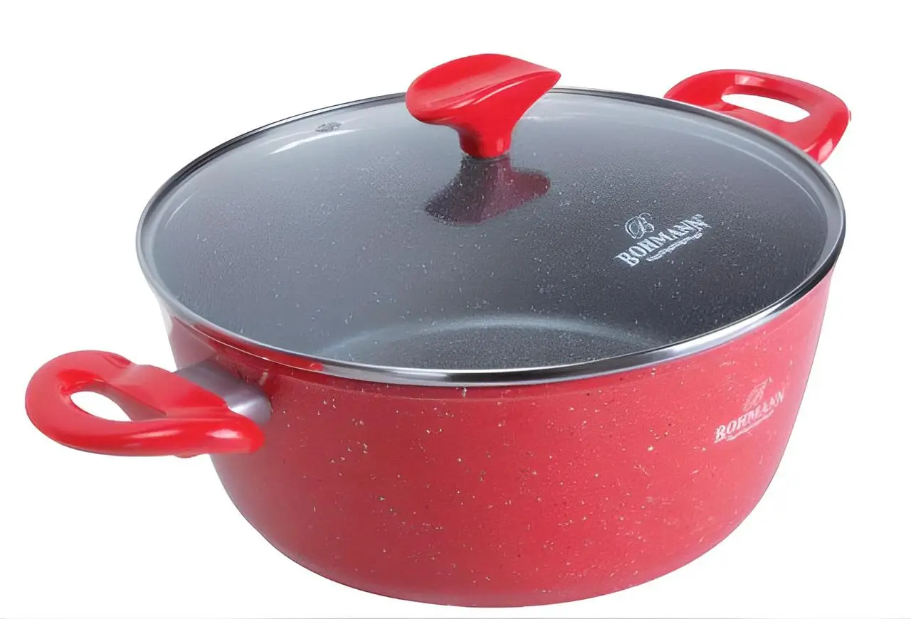 Оригінальний стиль посуду Bohmann BH 7355 чудово поєднується з його приголомшливою зручністю у використанні та простотою в догляді. Посуд із цієї серії виготовляється з алюмінію. У конструкції дна є пластина з неіржавкої сталі, завдяки якій дно не деформується, а посуд може використовуватися на індукційних та інших різновидах кухонних плит.